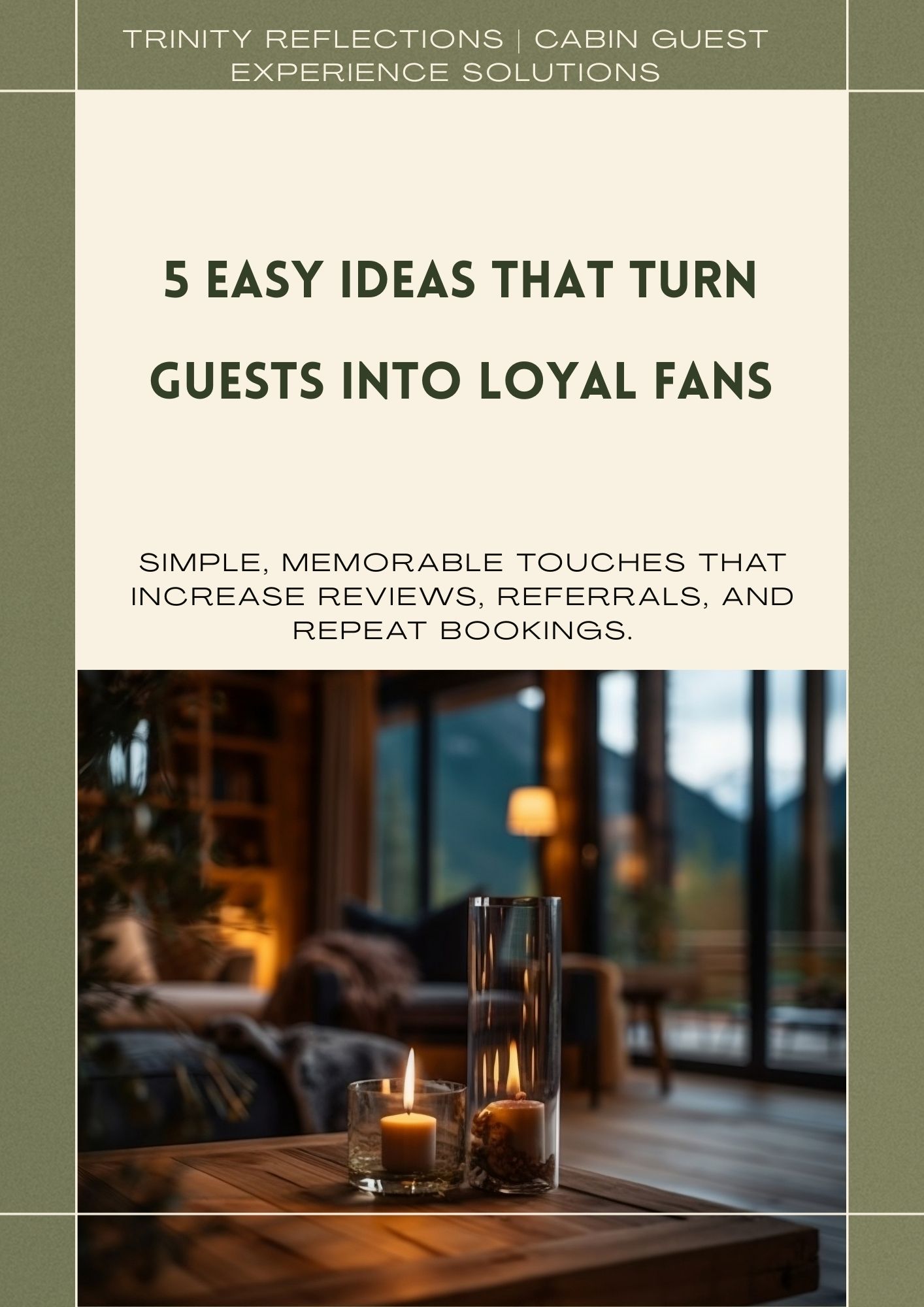 Unlock my FREE “5 Easy Cabin Tips That Turn Guests into Loyal Fans,” and discover simple, repeatable ideas you can plug into your cabins this month to boost reviews, referrals, and direct bookings.
